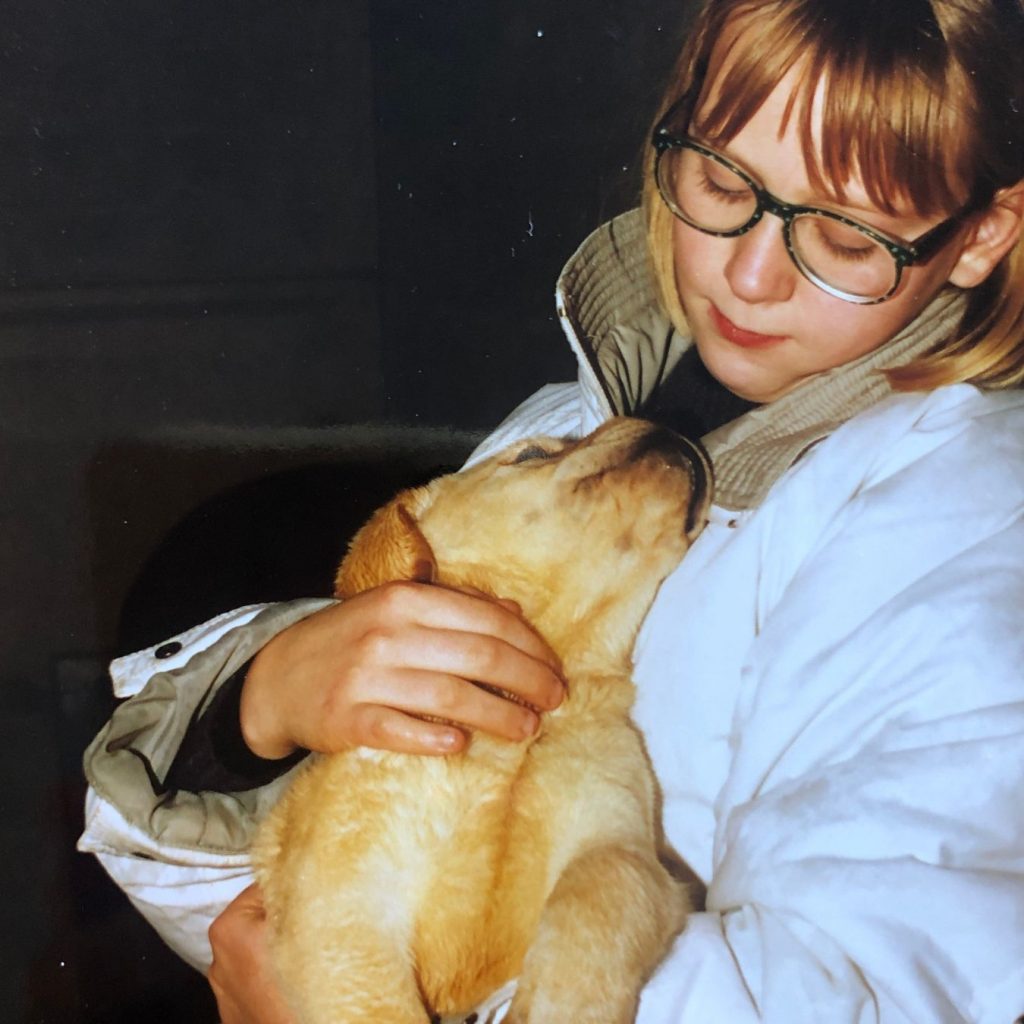 J’ai toujours grandi avec des chiens et chats à la maison, c’est pourquoi je les considère comme des membres de la famille à part entière. Il y a d’abord eu Ousti, le caniche de mes parents quand je suis née, mais aussi Hélia, la mini yorkshire de ma grand-mère. Puis nous avons adopté mon fidèle labrador Glenn, celui qui m’a appris combien les chiens étaient de fidèles compagnons, plein d’amour et d’empathie.